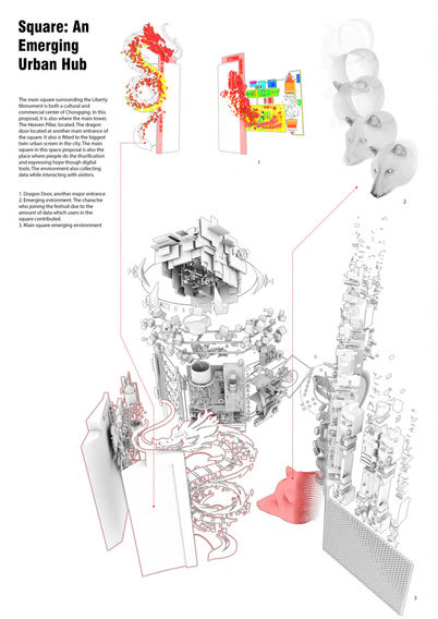 In this proposal, tours around the city will encounter several events and characters related to the well-known story: The Great Yu's Treatment With Flood (大禹治水). Chongqing, as a big city along the Yangtze River, has many cultural spaces related to the myth. These place, along with other famous urban spaces, will be overlayed by the adventure and experience of the myth. The AR technology act not only as of the tool of enhancing the urban experience but also as the mechanism of remapping the urban experience.